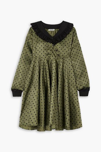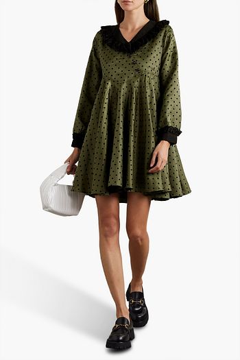 Flocked polka-dot satin-twill mini dress