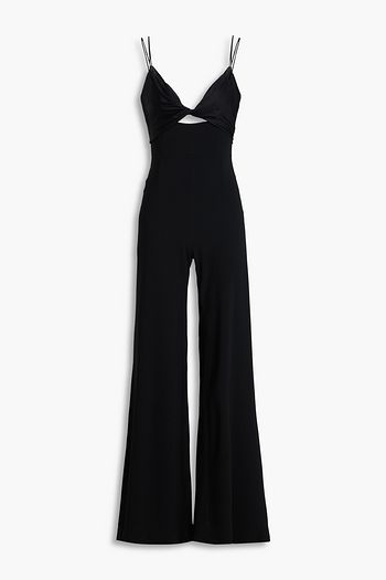 Chain-embellished stretch-knit wide-leg jumpsuit