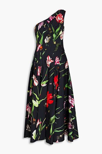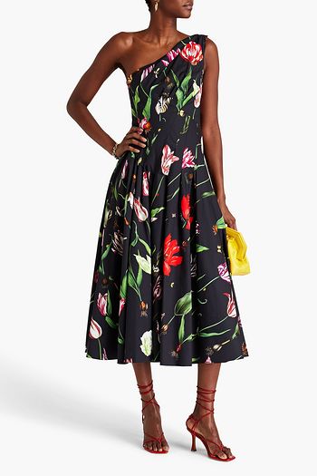 Off-the-shoulder floral-print cotton-blend poplin gown