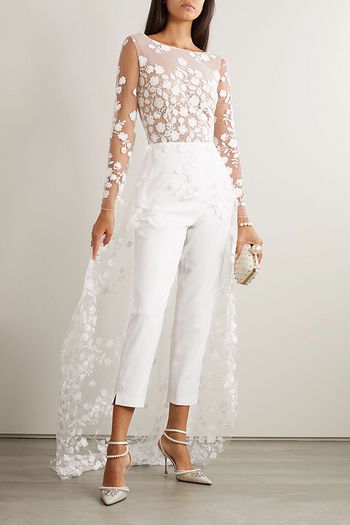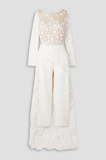 Poppy embroidered tulle and crepe jumpsuit