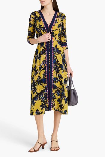 Floral-pint silk crepe de chine dress