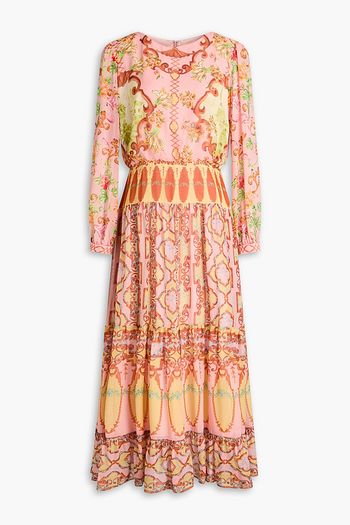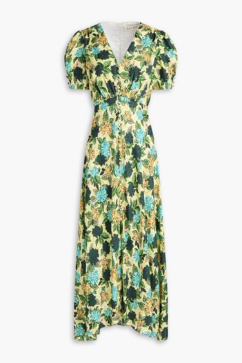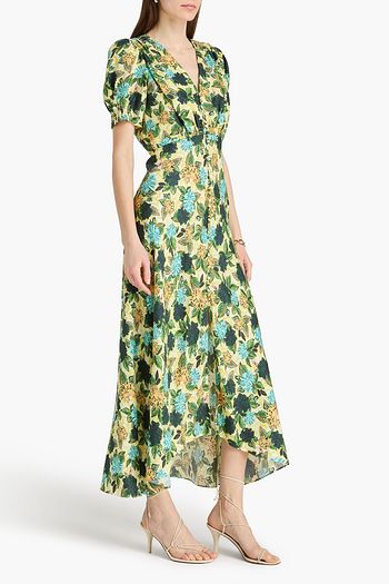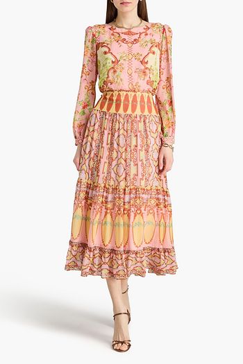Fleur ruffled printed silk-georgette and jacquard midi dress