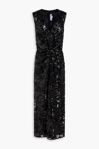 Brooke embellished draped stretch-jersey midi dress