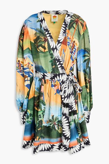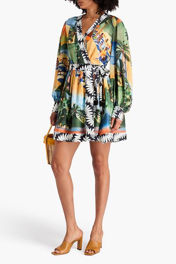 Printed twill mini wrap dress