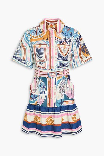 Belted floral-print cotton-poplin mini dress