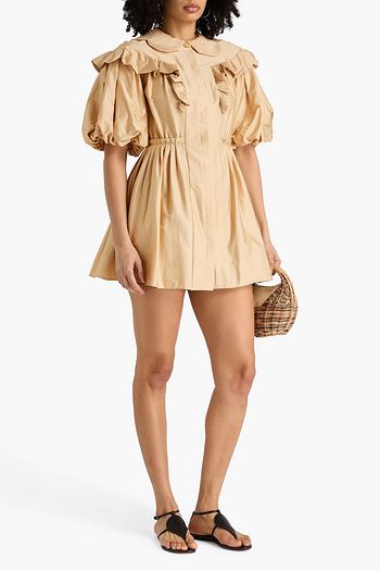 Ruffled stretch-cotton poplin mini shirt dress