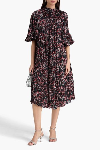 Ophelia pleated floral-print wool and silk-blend midi dress