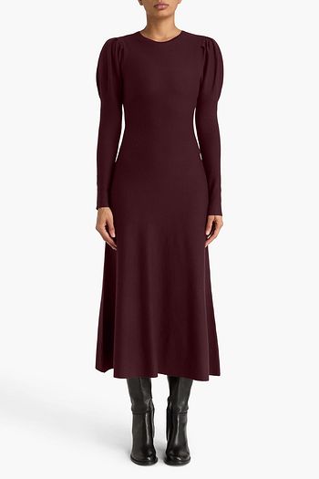 Victoria belted cotton-blend bouclé-tweed midi dress