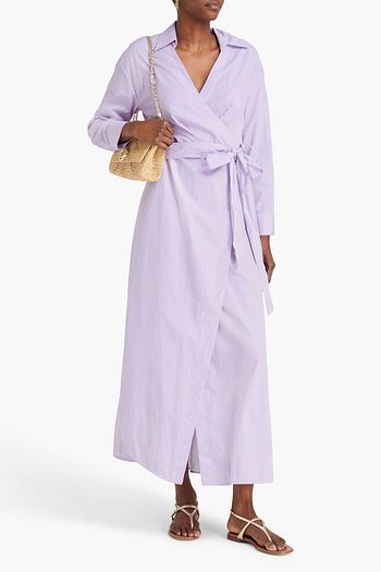 Cold-shoulder printed cotton-gauze mini wrap dress