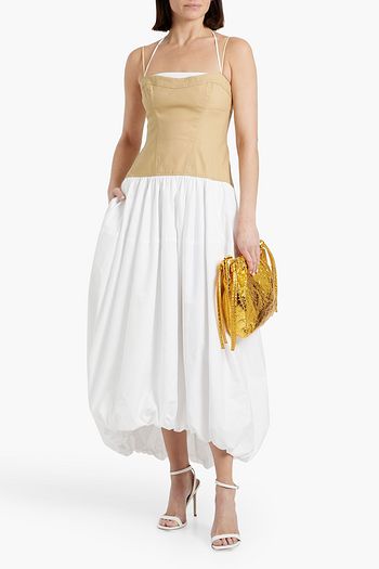 Two-tone jersey-paneled poplin maxi dress