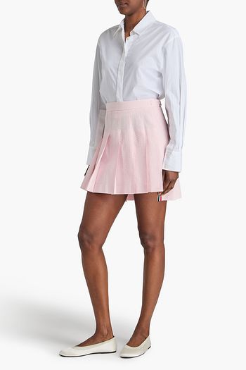 Pleated pinstriped canvas mini skirt