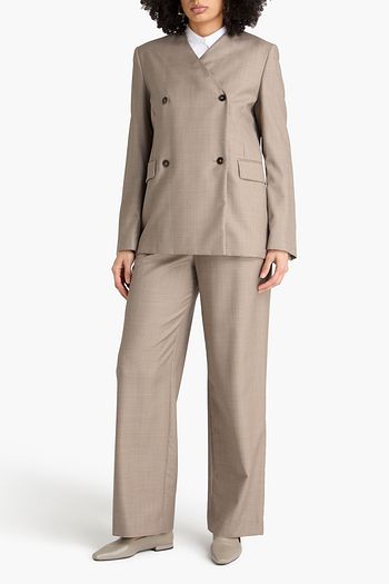 Off-the-shoulder crystal-embellished lace-trimmed wool-blend tweed jacket