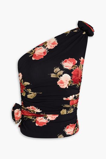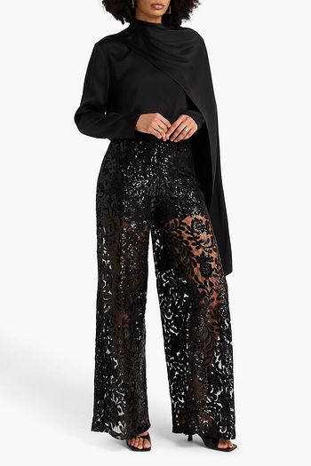 Floral-appliquéd wool and silk-blend crepe mini dress