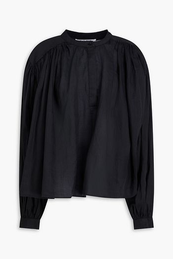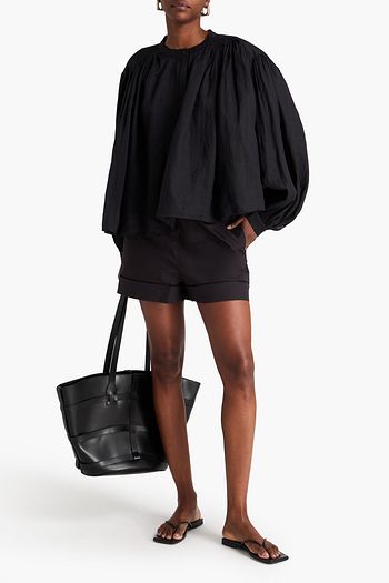 Embellished ruffled silk-tulle and crepe de chine blouse