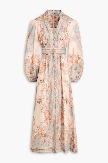 Malaga shirred printed cotton-poplin maxi dress