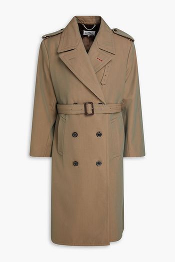 Belted layered denim, seersucker, and cotton-poplin trench coat