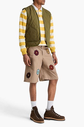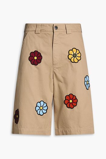 Embroidered cotton-twill drawstring shorts