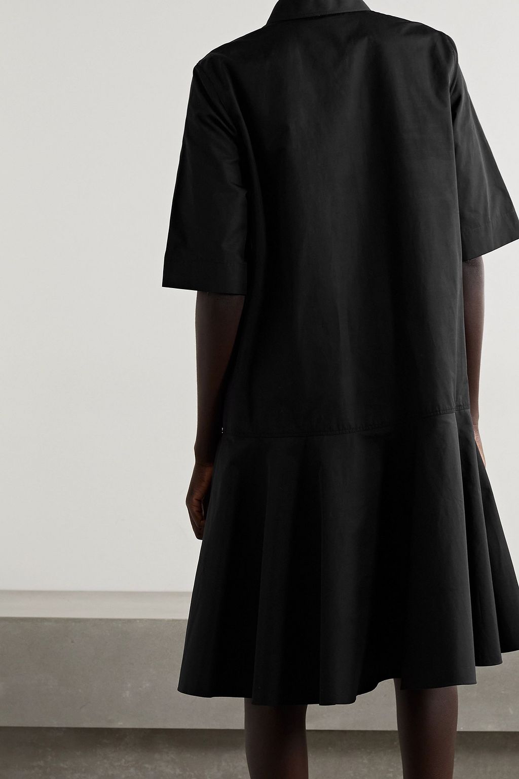 Lafayette 148's 'Bailey' dress has a fluted hem that gives the shirt silhouette a feminine touch. It's made from black cotton-poplin and has a neat collar and sizable patch pocket. Styling is effortless - just add a straw bag and flip flops.