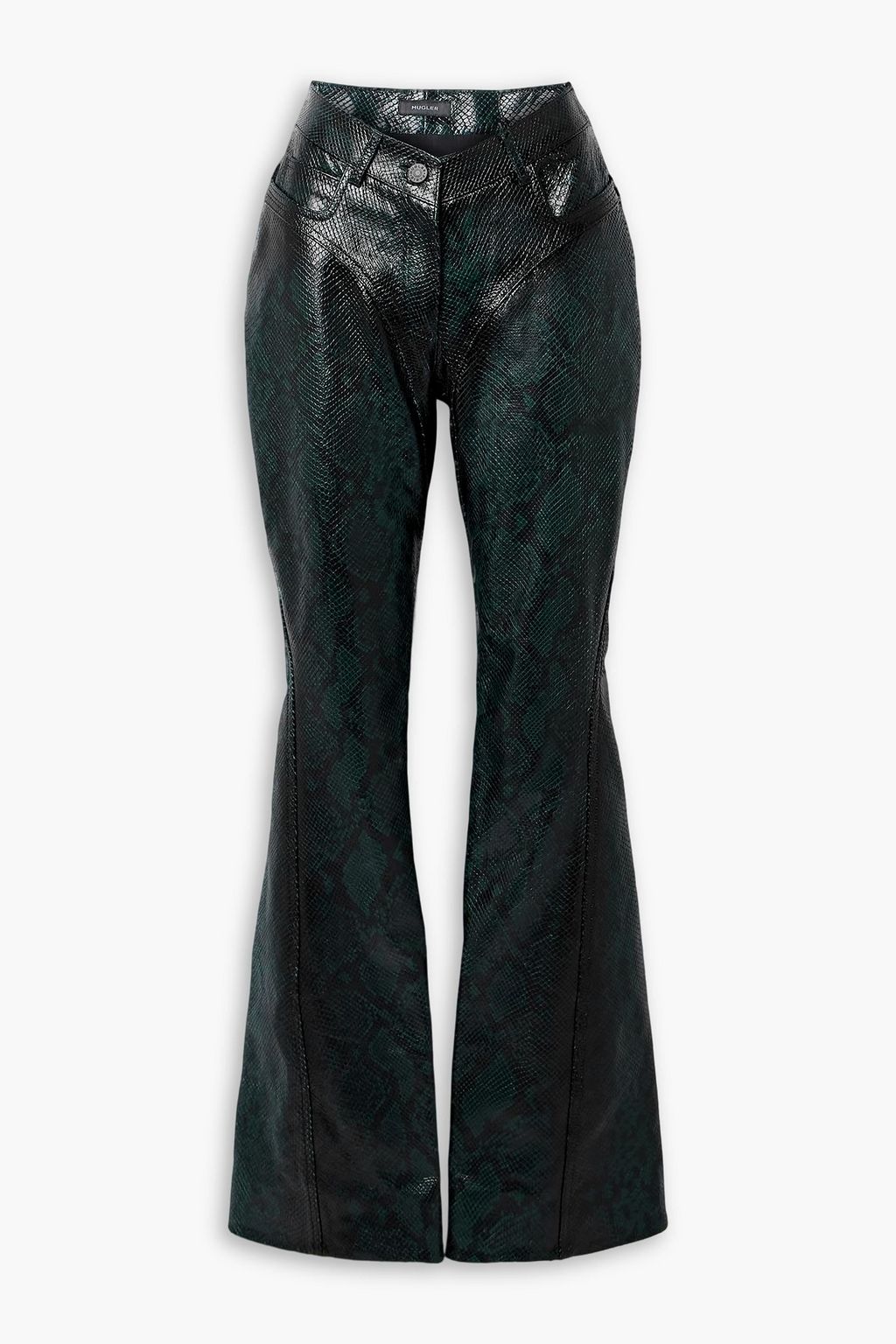 One look at the contouring seams on these pants and you know they're from Mugler. Made from panels of snake-effect leather, they have a V-shaped waist and skinny-legs that kick out to flared hems. This is drama … the good kind.
