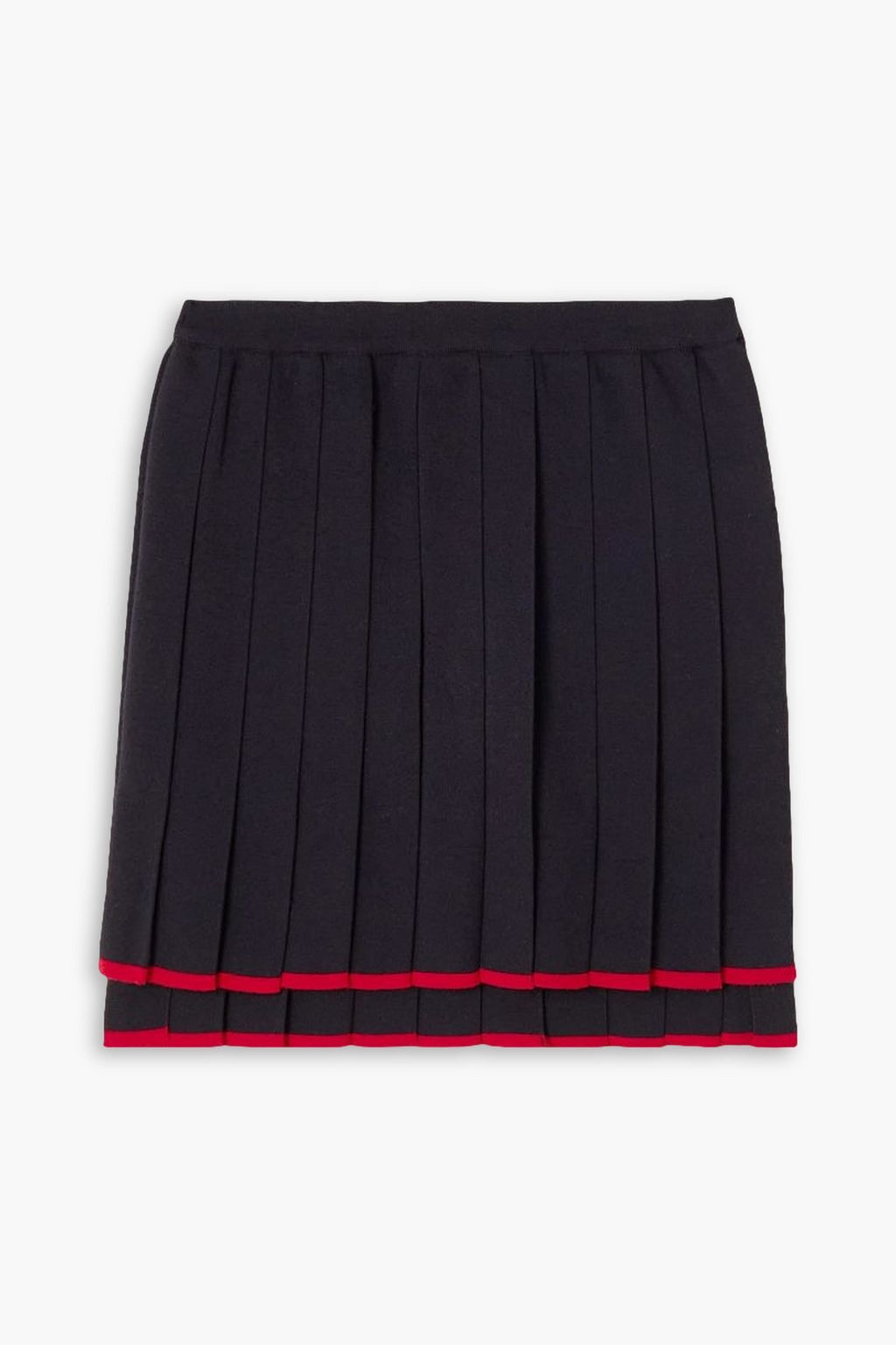 Thom Browne's mini skirt is cut from a black wool-blend traced with contrasting red stripes at the hem - a long-standing brand signature. Modeled after retro styles, it has a flowy, pleated design and an elasticated waistband. Style it with the coordinating jacket and loafers.