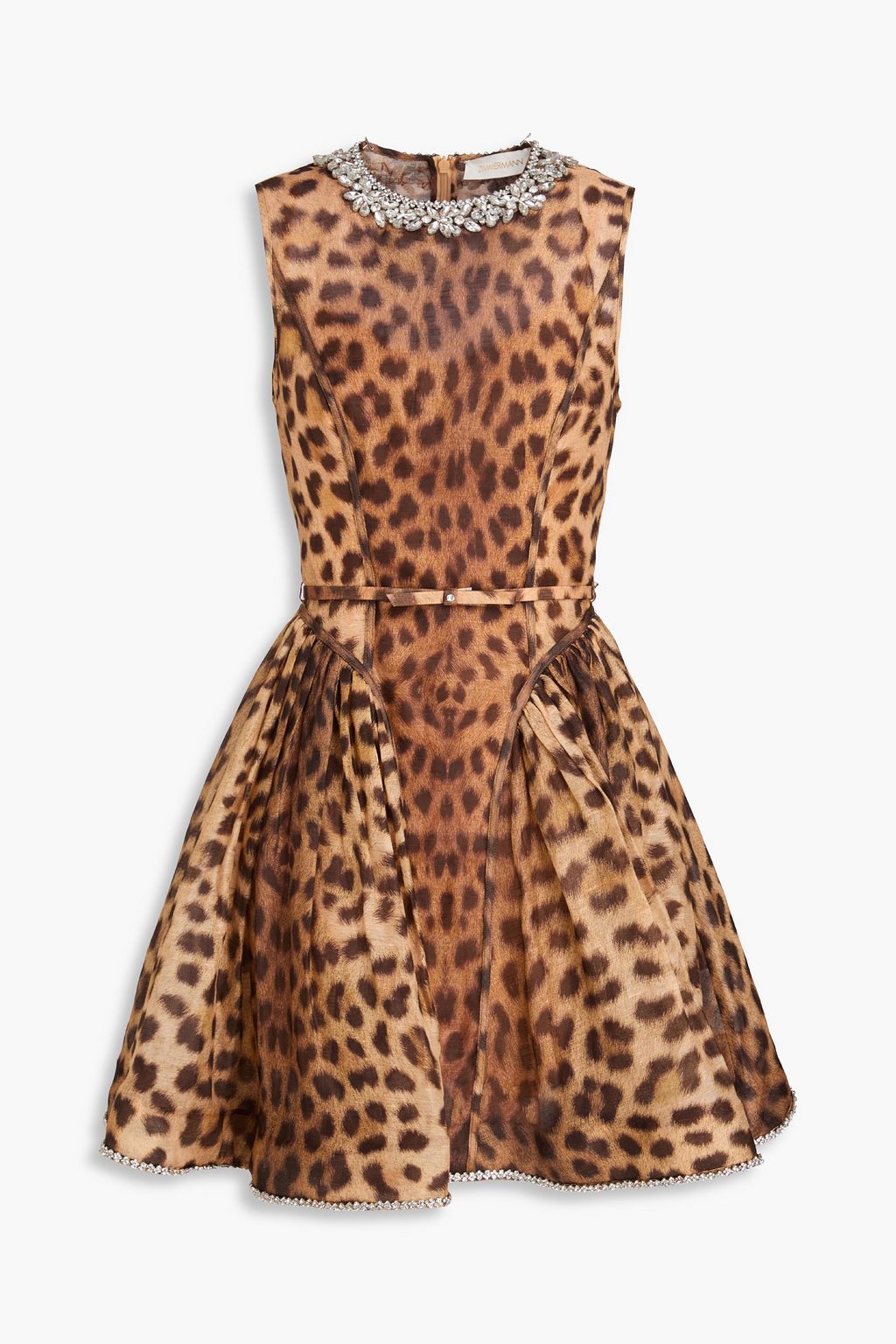 ZIMMERMANN Crystal-embellished leopard-print crepe mini dress