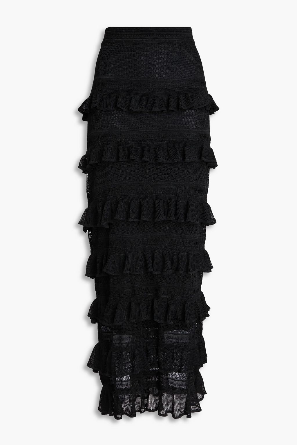 Zimmermann's tiered midi skirt is the ultimate wardrobe hero and will go from day to night with a simple swap of shoes. It's made from a lightweight pointelle-knit with rows upon rows of ruffles. It's lined for coverage, too.