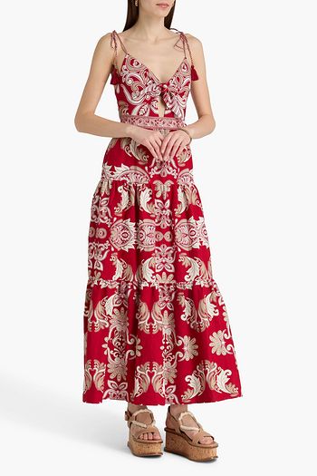 Cora tiered floral-print cotton-blend maxi shirt dress