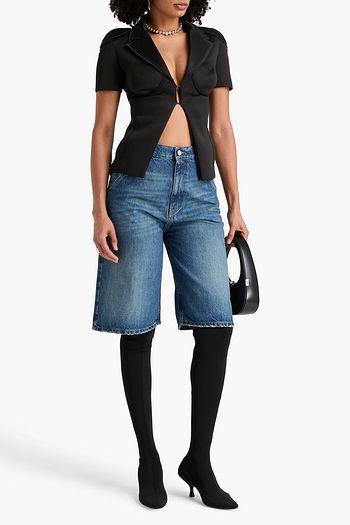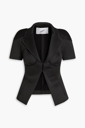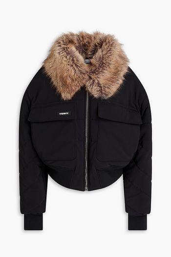 Fleece-trimmed quilted stretch-shell bomber jacket