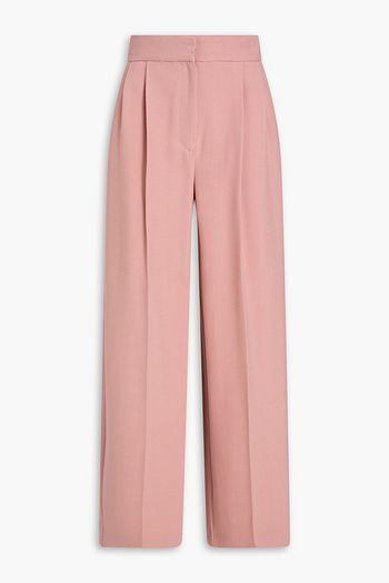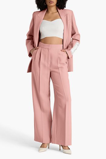 Pleated wool-blend crepe wide-leg pants