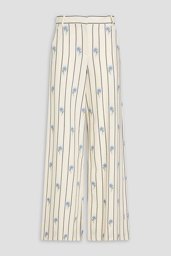Printed wool-blend twill wide-leg pants
