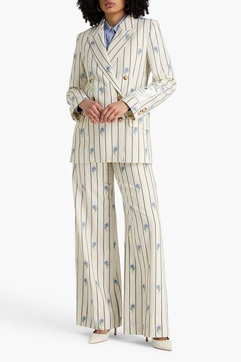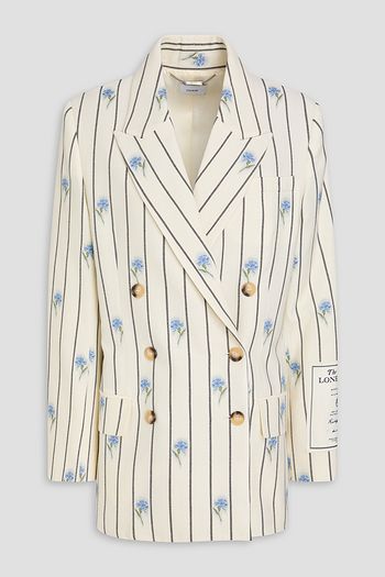 Double-breasted printed wool-blend twill blazer