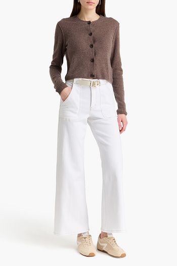 Cropped waffle-knit cotton and cashmere-blend track pants