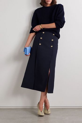 Oversized double-breasted two-tone wool-blend crepe blazer