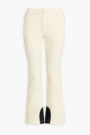 The two most important considerations with ski pants: fit and fabric. They should retain their shape, allow you to move freely and always remain watertight. Consider an all-in-one look – Perfect Moment has great options – to cover all bases.