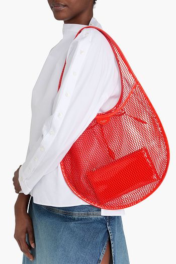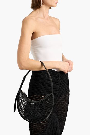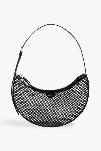 One Piece Demi Lune patent leather-trimmed mesh shoulder bag