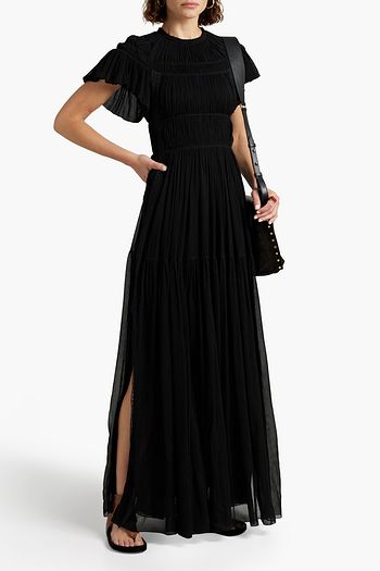 Embellished pointelle-knit wool maxi dress