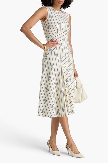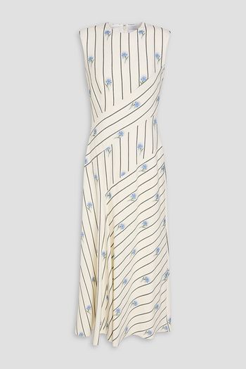 Printed wool-blend twill midi dress