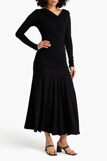 Ruched cutout crepe maxi dress