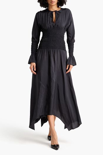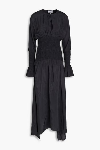 Ruffled crinkled-taffeta midi dress