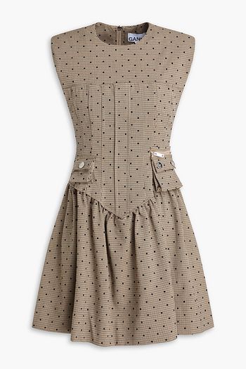 Pleated floral-jacquard mini dress