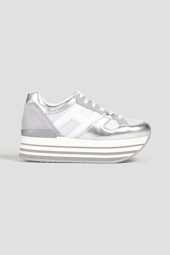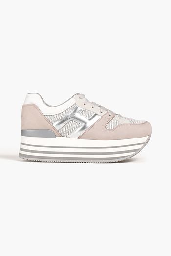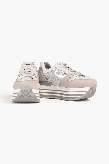Mesh, leather and suede platform sneakers
