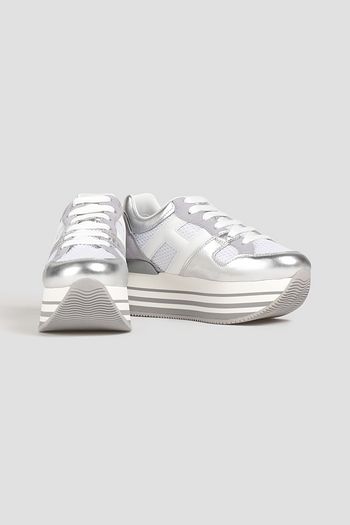 Hogan two-tone leather and lamé platform sneakers