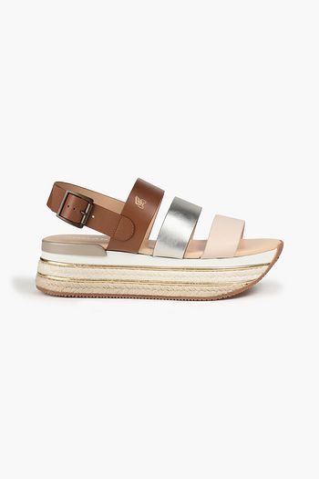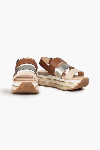 Color-block leather platform sandals