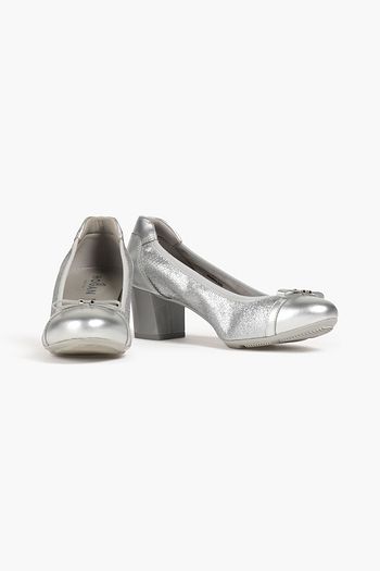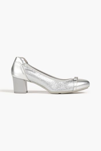 Glittered metallic leather pumps