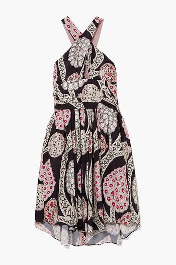 Jan printed pleated crepe mini dress