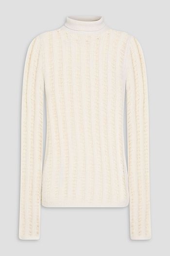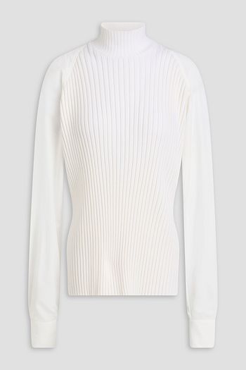 Poplin-paneled ribbed wool-blend turtleneck sweater
