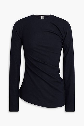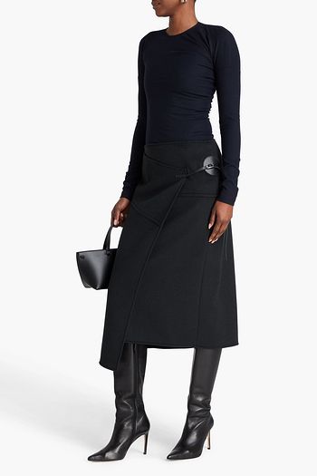 Asymmetric wool-blend flannel top