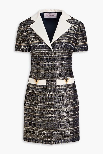 Pleated lace-trimmed cotton-poplin mini shirt dress