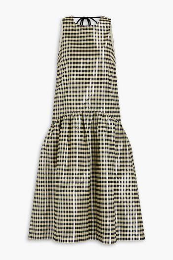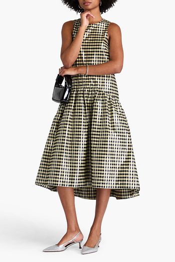 Belted leather-trimmed broderie anglaise cotton midi dress