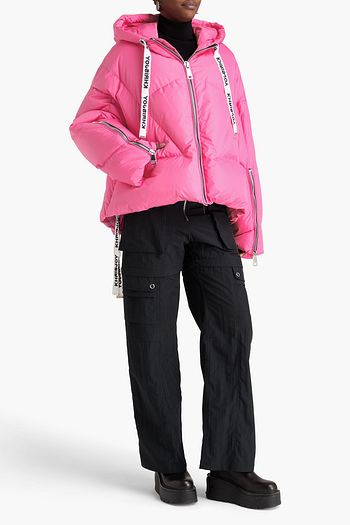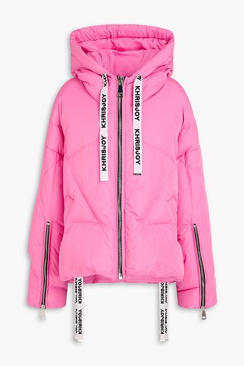 Stretch-shell hooded down jacket